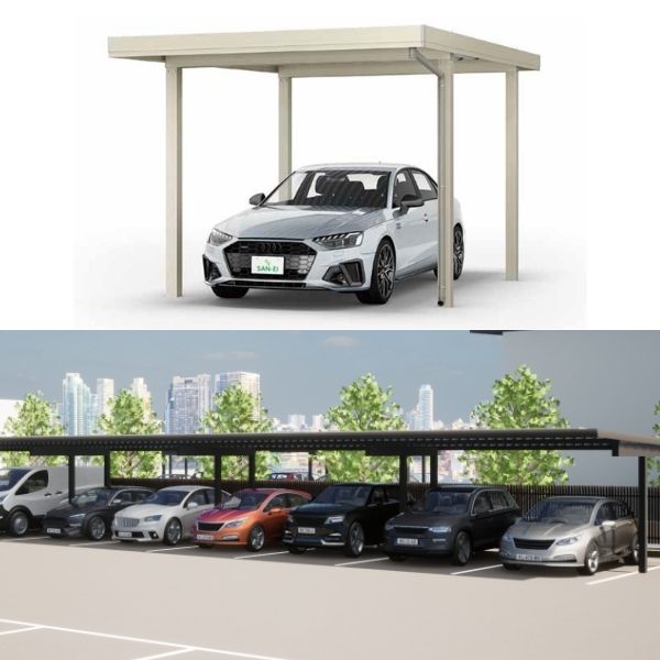 ・柱の位置が後方にあるため出入りがスムーズ・屋根勾配2°対応・耐積雪量最大40cm・5色展開