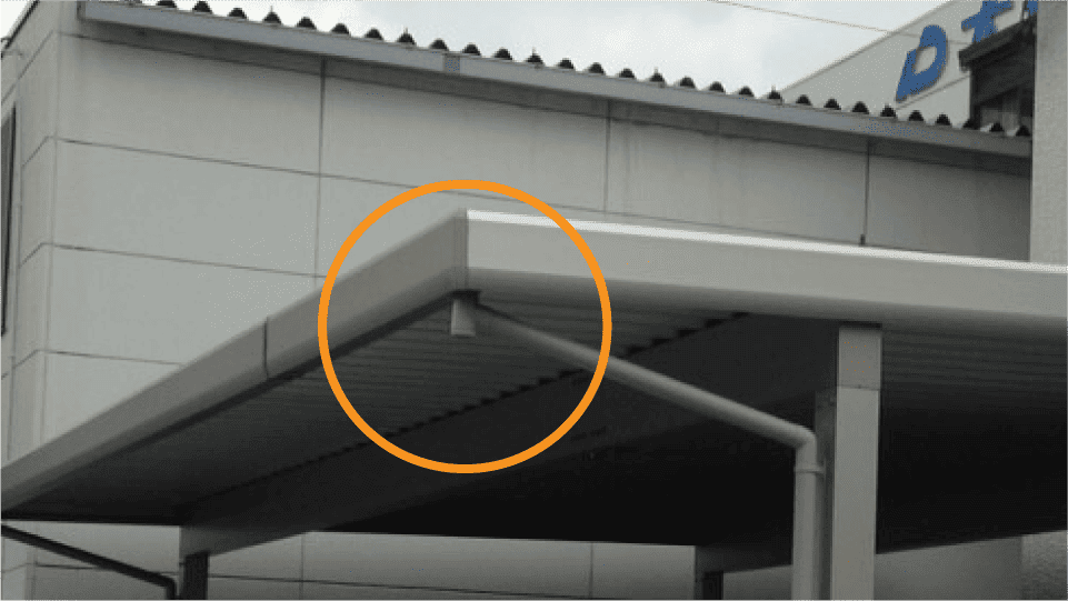 弊社製品は太陽光パネル搭載可能型のため、一体型に比べて継ぎ目からの雨漏りの心配がありません。また、排水のための雨樋には清掃に適した「ゴミ出しエルボ」を設けることで、ゴミ詰まりによるオーバーフローからの雨漏りを防ぎます。