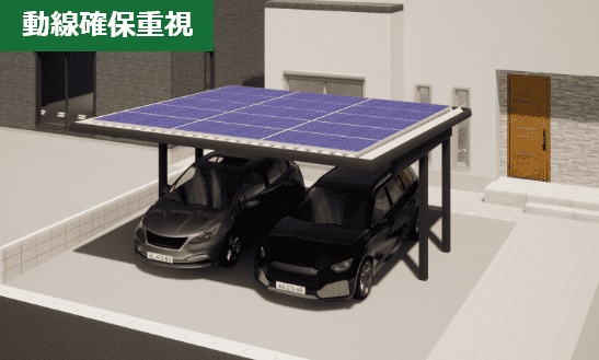 スムーズタイプはヘリオスポートの中で、唯一の後方支持型のカーポートです。柱を後ろにまとめることで玄関近くに設置しても動線の邪魔にならず、また車庫入れ車庫出しの際にぶつけてしまうリスクも少なくすることができます。